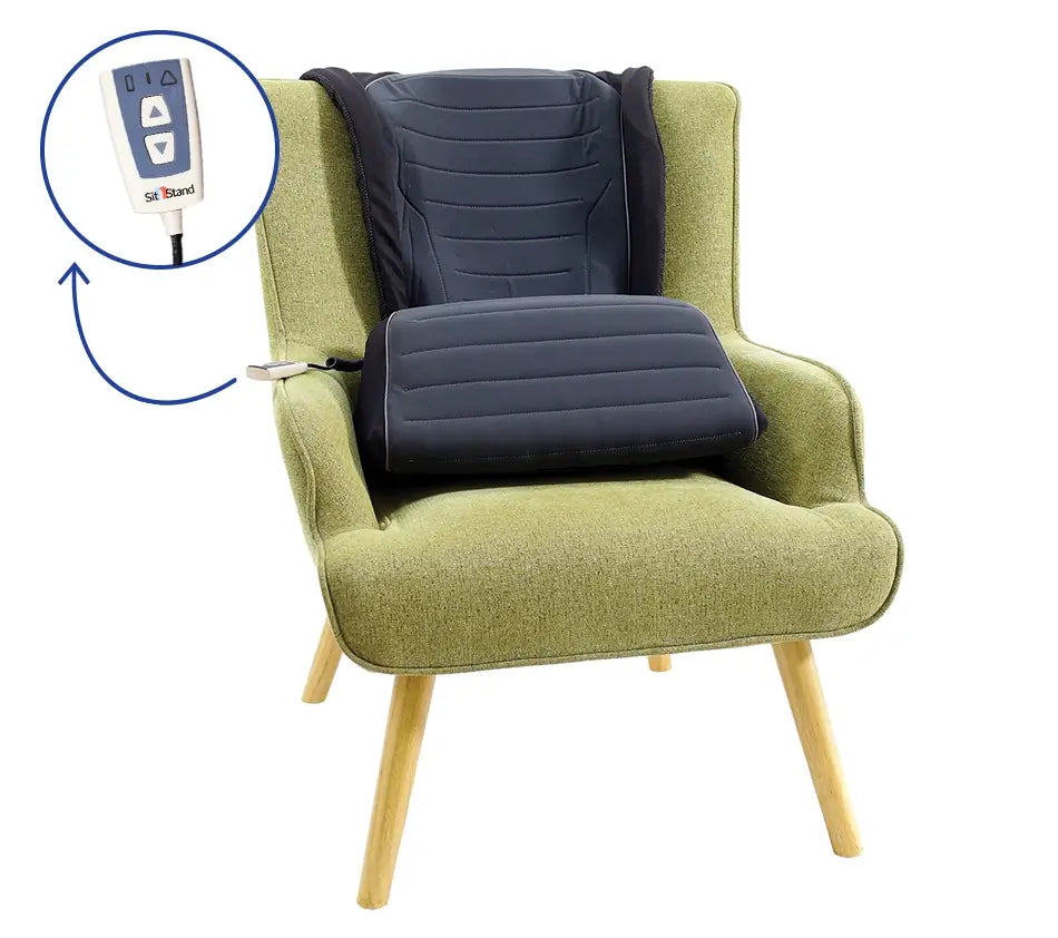 适合家中、露台或院子里的任何椅子 * 为什么要局限于传统的升降椅,它不能移动,也不能随身携带? * 易于使用、安全且稳定 * 可清洗、易于拆卸的椅套 * 重量轻,仅为 8.8 磅 * 专为长时间舒适坐姿和轻松站立而设计 * 无需电线 - 由可充电电池供电 * 包括:SitnStand Classic 可拆卸椅套、锂离子电池、电池充电器和便携包 *